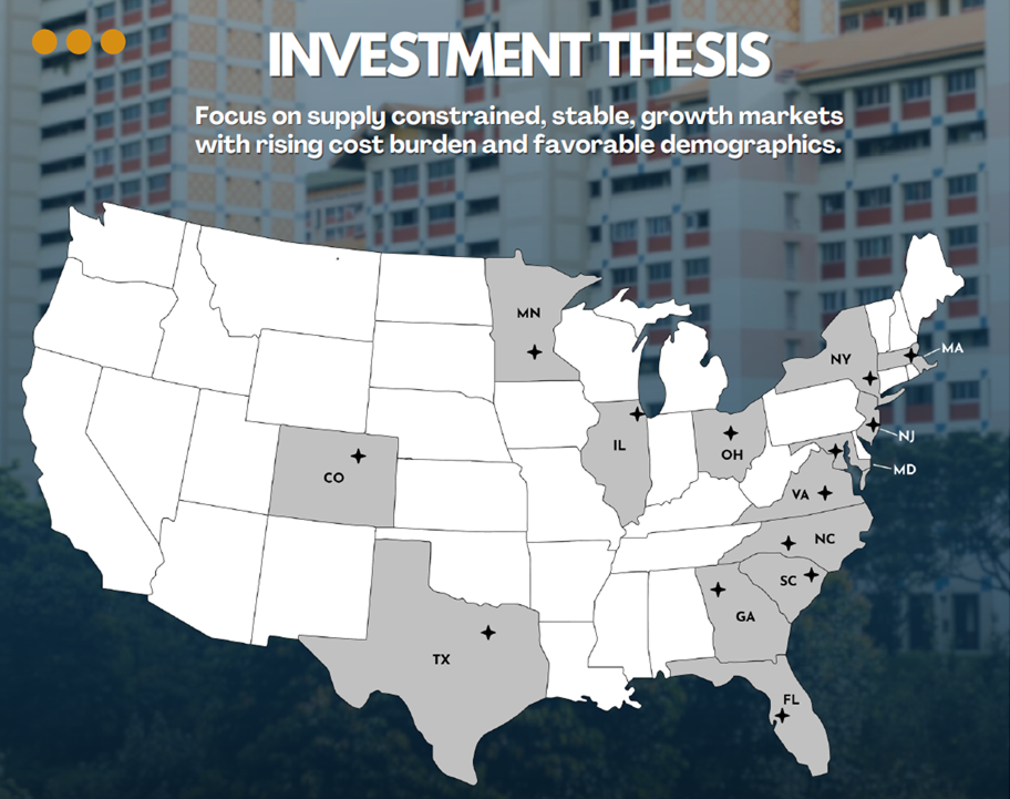 - Long-term, strategic multifamily investments